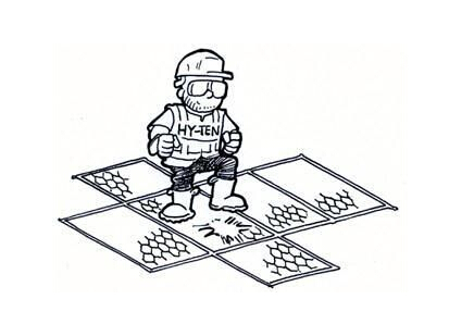 (1)材料运输 格宾网是机织网,经过选丝、织网、剪片、勾边、检验等一系列程序编织而成。格宾网可以是 卷状的,也可也将笼子压缩、打包,以便于工人将处理装箱和装船,绑丝以卷的形式提供。最 好将格宾网放入干燥的环境中,绑紧,便于装船。 (2)安装要求: 将折叠好的格宾置于平实的地面展开,压平多余的折痕。将前后面板、底板、隔板立起到一定 位置,呈箱体形状。相邻网箱组的上下四角以双股组合丝连接;上下框线或折线,绑扎,并使用螺 旋固定丝绞绕收紧联结。石笼网由隔板分成若干单元格,为了加强网垫结构的强度,所有的面板 边端均采用直径更大的钢丝。将数件空格宾放置于平地,将其联结在一起.在有下层网箱组的情 况,绑扎上层网箱组间相邻边的底线框时,必须将下方网箱组面层框线或网片绑扎在一起,用螺旋 固定丝搅扰收紧,以求连成一体。将网盖向下折,拉到位并与前板、侧板及隔板绞合在一起。 (3)安装程序: 用大约长于边丝1.5倍的绑丝绑扎。笼子边丝的最长一般不得超过1米。所有的面板边端均采用 直径更大的钢丝。将相邻网箱组的上下四角以单股或双股组合丝连接, 双股间距不大于300mm 。上下框线或折线,用绑丝螺旋固定绞绕收紧联结绑扎,边缘末端的间距最大为100mm。可用钳 子将绑丝固紧。绑扎时需注意保护网丝表层的涂层,不要将其损坏。如客户需要,我们可派专 业人士前往指导。 (4)地基准备 石笼网需放在按施工图设计平整好的坡面或开挖好的基坑中。将基坑或坡面整平,在上面略不规则地洒上符合工程规范的松散的土壤和相应的植物。地基周围的排水装置需做合理的测量(如符合工程项目的土工布、排水结构等需起作用)。在护坡结构中,石笼网侧面也可以安装符合要求的土木用纺织品。 (5)安装及材料 地基准备好后,把预先安装好的没有装材料的石笼网放在适当的位置,沿边把各个部分连接起来,形成连续统一的整体。需装入的石料要符合相应的采石规则,可用采取破石机械破解超大粒径石料来满足需要。石料需坚硬、棱角圆滑、具有耐久性,这样石料浸泡在水中或暴露在烈日等恶劣环境中,才不至于崩裂。石料应该在100mm至200mm之间,公差为±5%,不要暴露于表面。另外,石头最大不要超过250mm,最小不小于50mm。1m高的石笼网装入300mm高的石料,0.5m高的石笼网装250mm高的石料。将石料充填到网箱中,一般每层厚度控制在30cm左右,并适当捣实,表面叠放平整(图)。如箱笼厚度在30cm以下的,可一次性进行填料。装石料时注意不要破坏PVC涂层。石笼石料装填过程中采用机械和人工相配合的施工方法,首先用机械装填料不超过石笼高度的1/2,再用人工将周边的块石摆放整齐,用细石填缝密实,然后再继续装料。建议小石料填缝应主要在内部,外露面不宜用小石料,护坡工程石笼填料粒径可以小一些,防洪工程石笼挡墙填料粒径可以大些。图为1m高的石笼网填石图。石笼网安装在墙底需要露出两面,加筋垂直装在侧面。0.5m高的石笼网用在护坡工程中不需在内部加入钢筋定在需安装多层石笼网的时候,每层装入大约25-40mm,顶层表面需平整,留有最小缝隙。确保顶层的隔断易安装连接。 (6)封口 将石料合理装入网中,基本平整、留有最小空隙后,覆上网盖,将网盖与网身接触的框线按规定进行绑扎。以便将单个石笼和其它相邻石笼连接在一起。注意不要损坏网丝和PVC涂层。网盖上凸出的边丝需要将其在周边绕两圈,将边缘绑紧。盖子需要与网身及各部分隔断绑牢固。同时相邻网盖间也要绑好。最后,网子上末端所有突出的尖锐的部分都要尽量弯向笼内,使其平滑美观。